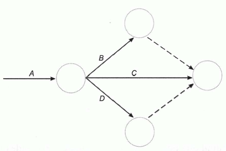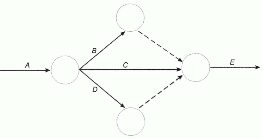 Figura 5.5 Ejemplo del uso de actividades ficticias cuando más de una actividad no precede a ninguna otra