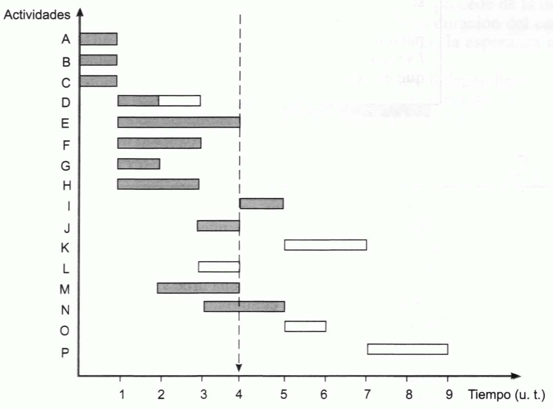 - Cada barra tiene una longitud directamente proporcional a su duración y comienza en el momento de la iniciación de la tarea que representa, finalizando en el de su terminación.