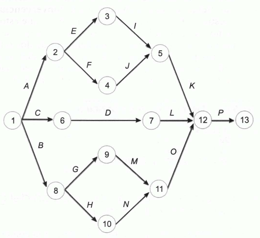 - Nudo de destino. Situación en la cual se ha finalizado la actividad en cuestión: pueden comenzar las que le siguen en el orden secuencial según la tabla de precedencias.