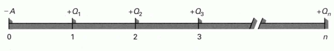 Denominando \(Q\) al flujo constante, el valor actual neto es: