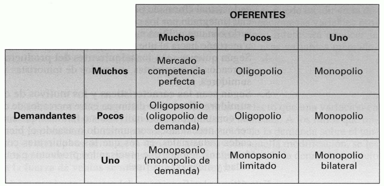 Figura 12.4 Clasificación del mercado según el número de oferentes y demandantes que intervienen