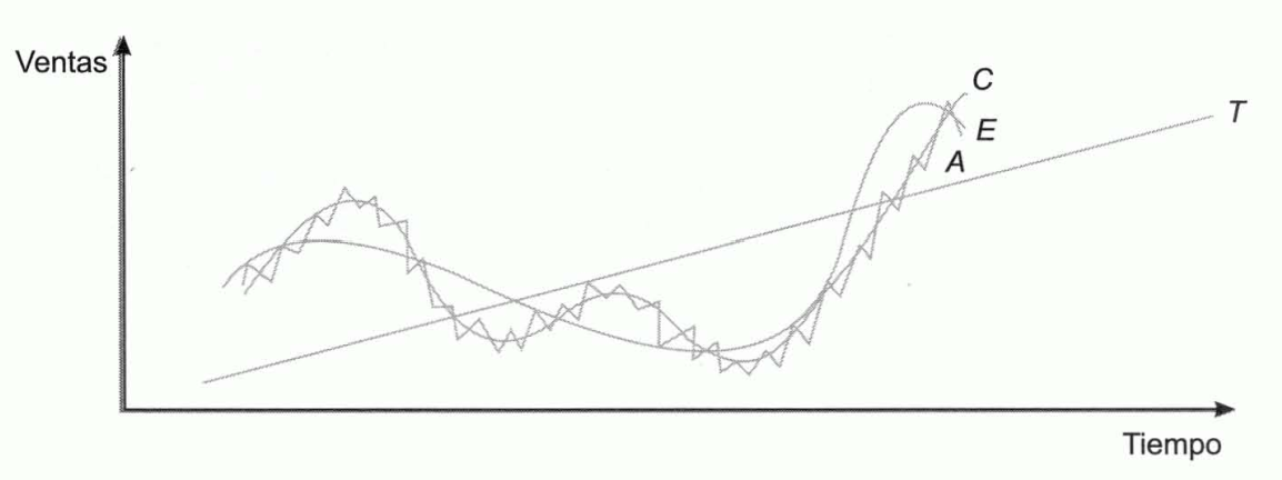 En algunos casos, en la evolución de las ventas es posible distinguir hasta cuatro componentes: