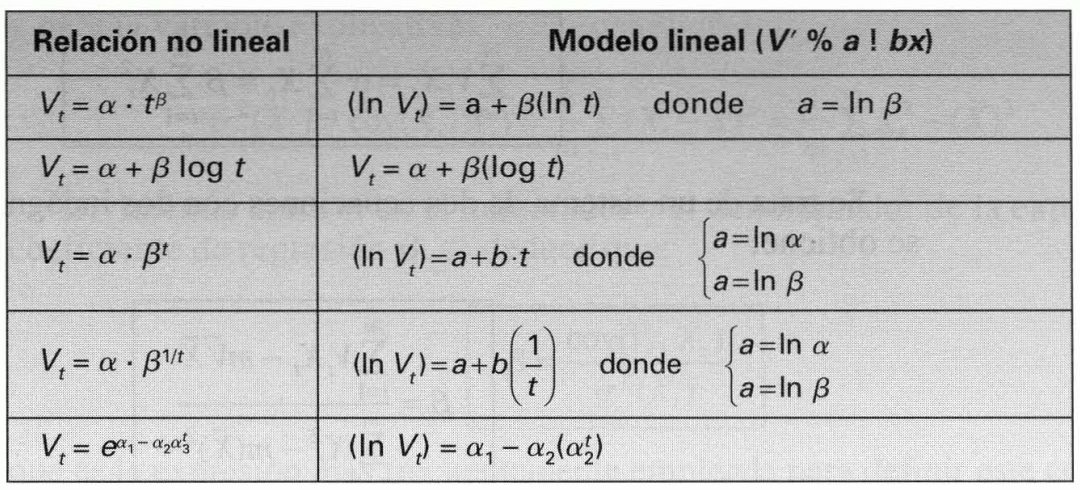 Figura 12.7 Funciones que pueden ser transformadas en lineales tomando logaritmos